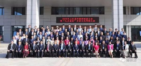 在庆祝新中国成立70年华诞之际,2019山东海外侨团联谊会暨“九月菊香”齐鲁文化研修之旅在山东省济南举办。本次活动由省侨办、山东中华文化学院主办,旨在展示山东丰厚文化底蕴,传播中华文化,增强海外侨社团对山东省情和中华优秀传统文化的认知,拓展与海外侨团的联系,促进中外友好交流与合作,搭建全方位、多角度、高层次的互动平台。来自37个国家和地区103个社团的114位侨领参加活动。