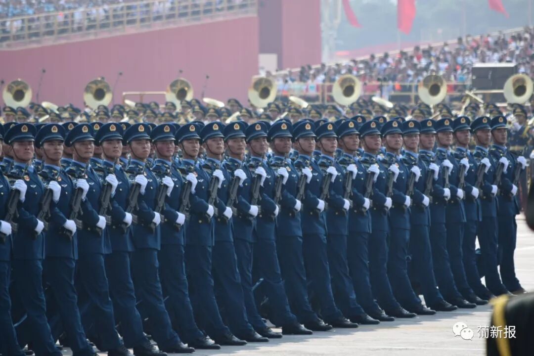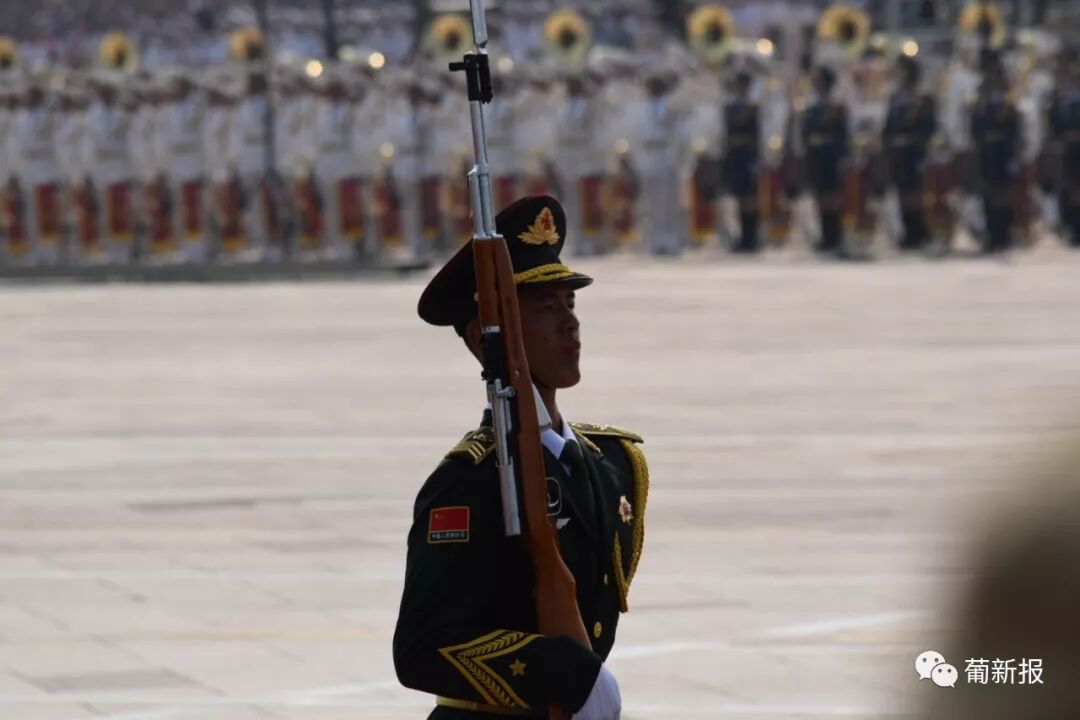 随着“标兵就位”一声令下,摆臂、踢腿、落地,60名标兵成梯次同时向天安门两侧分开,前后一条线、全员一个音。从入场到最后一名标兵完成最后一个动作,精准无误、米秒不差。