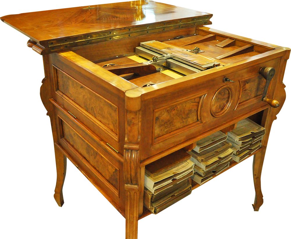 这张梳妆台是里希特公司所有者阿道夫·里希特送给妻子的礼物。 它通过硬纸板材质的移动播放音乐。