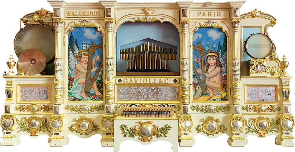 这类风琴已知存世的只有两台。 另一台在德国辛斯海姆的Technik博物馆展出。 它是按照室内使用进行设计的,主要是舞厅或宴会厅。 乐器状况很好。