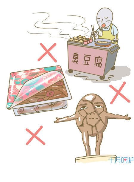 鸭脖、咸菜、臭豆腐、熏肉、泡菜、茶叶蛋、放置过久的剩饭菜……所有只要不新鲜的食物,孕期最好都不要碰。