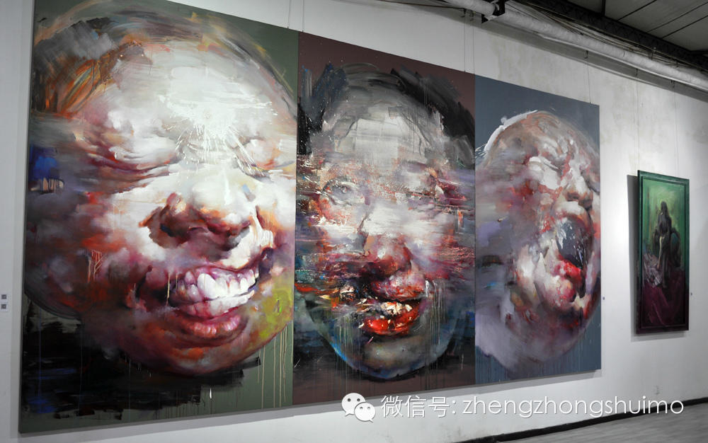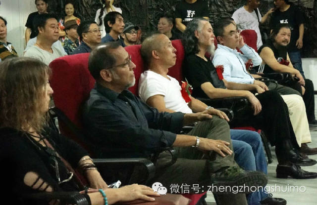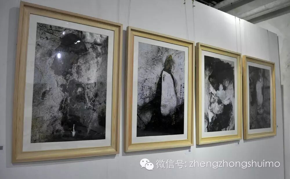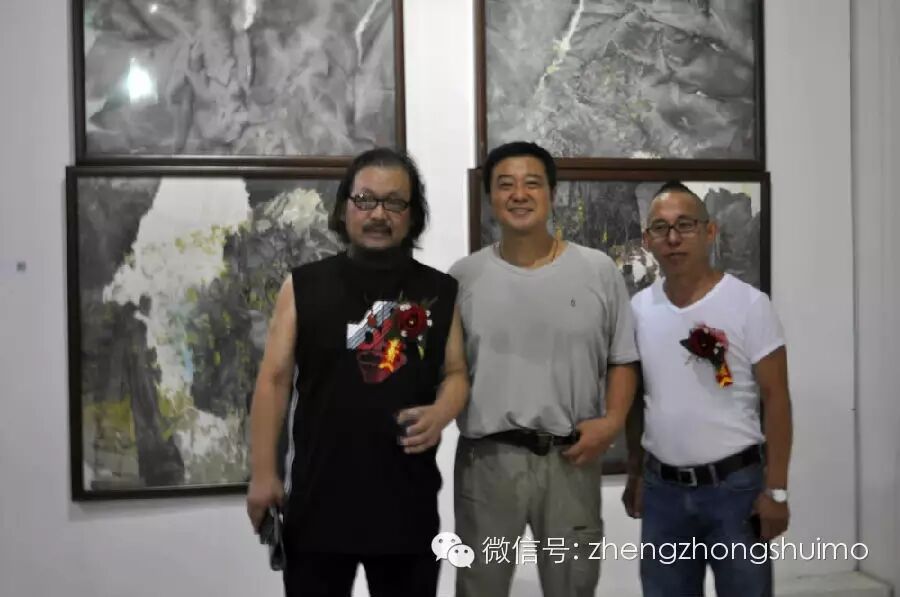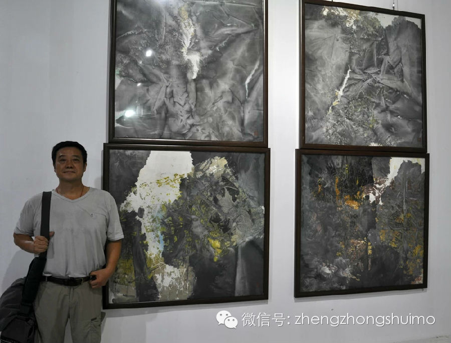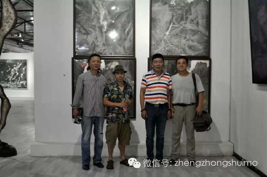 大卫、海涛、赵云峰与郑忠在郑忠水墨作品《谷音系列》前