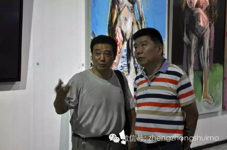 赵云峰先生与画家郑忠交谈后在《谷音系列》前留影