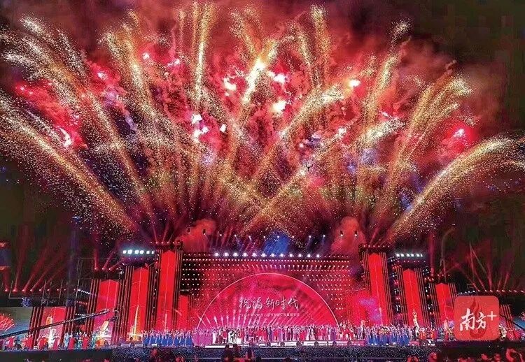 The ‘Guangdong show’ ends up with a stunning firework show and drones lining up as “祝福新时代” which means best wishes for the new age.