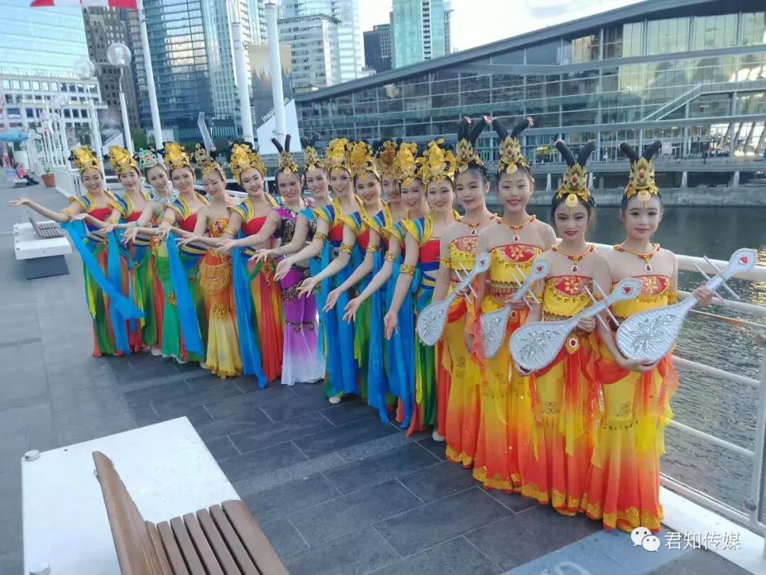 演出规模宏大,水平精湛。有中国风格的夜光龙,敦煌舞,还有极具异国风情的韩国鼓舞,泰国舞,埃及肚皮舞以及乌克兰舞蹈。尤其引人注目的是中国舞“敦煌”。当观众都以为这是一支国内受邀的艺术团体时,记者得知,演员全部来自温哥华本地。据艺术指导Jasmine介绍,该团自今年4月接到这一演出任务后,为了配合响应一带一路主题,艺术团重新编创,演员们经过一个半月的加时排练,最终呈现给2000名观众这曲中国古典舞蹈,《盛世敦煌》,成为当晚一抹亮色。