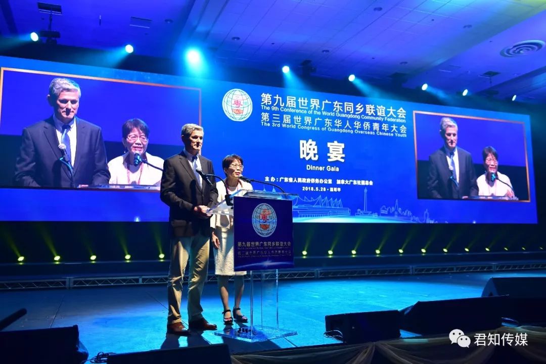 加拿大国会议员黄陈小萍和关慧贞分别宣读了加拿大总理特鲁(Justin Trudeau)多和加拿大总督帕耶特(Julie Payette)的祝贺信,黄陈小萍代表加拿大政府致辞祝贺世粤联会的召开。