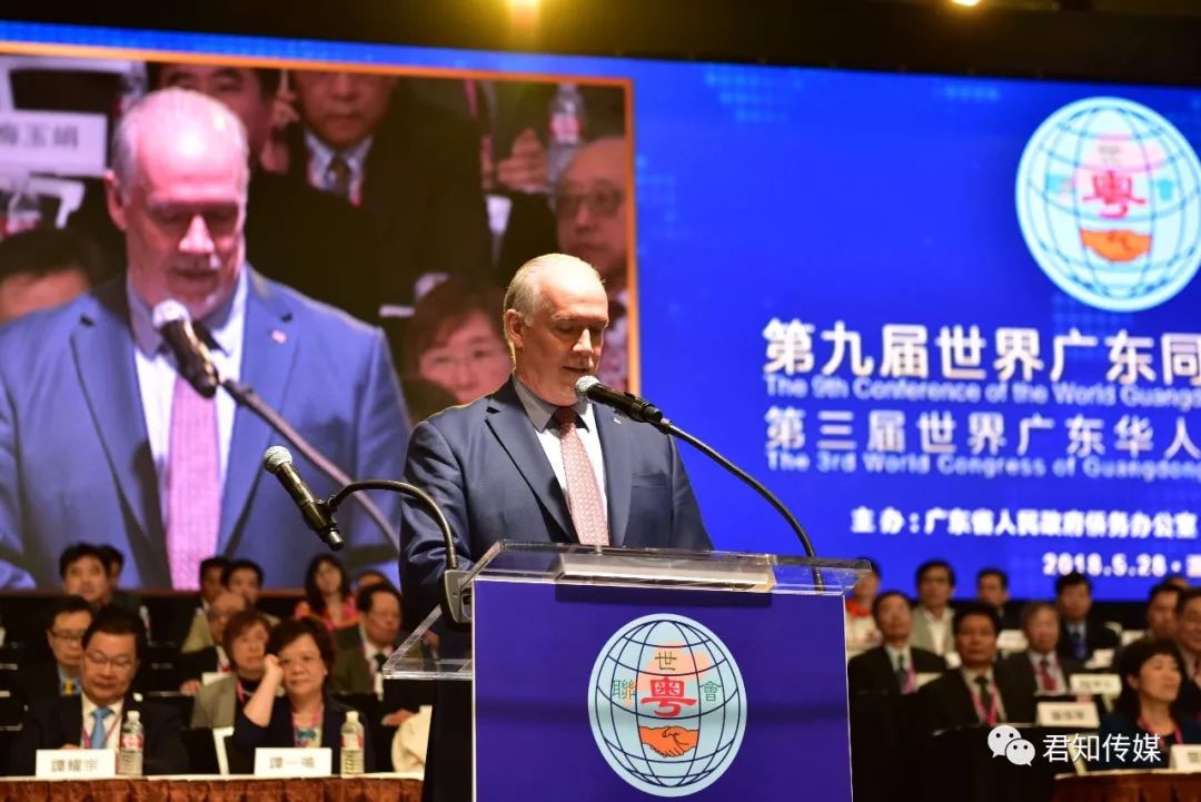 加拿大BC省省长贺瑾、中国驻温哥华总领事佟晓玲、列治文市长马保定也发表了热情洋溢的讲话,他们盛赞世界广东同乡联谊大会是具有广泛影响力的世界华人盛会,是海内外粤籍乡亲联络乡情、服务社会、加强团结的纽带,是广东同乡进行跨国跨地区交往、积极开展经济合作和文化交流的重要舞台,也是中国和加拿大友好交往的桥樑。