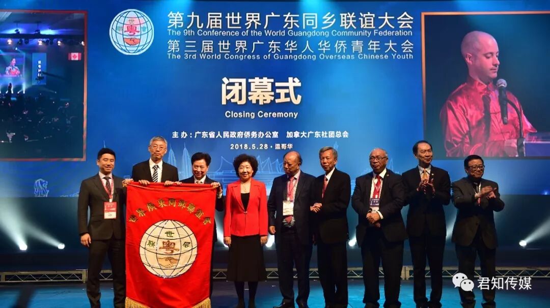 由广东省侨务办公室、加拿大广东社团总会联合主办的第九届世界广东同乡联谊大会暨第三届世界广东华人华侨青年大会于 5 月28 日在加拿大温哥华会展中心隆重举行。广东省政协副主席李心等中国广东省的领导以及来自全球32个国家和地区(包括加拿大各省区)的粤籍华人华侨1800多人出席盛会。