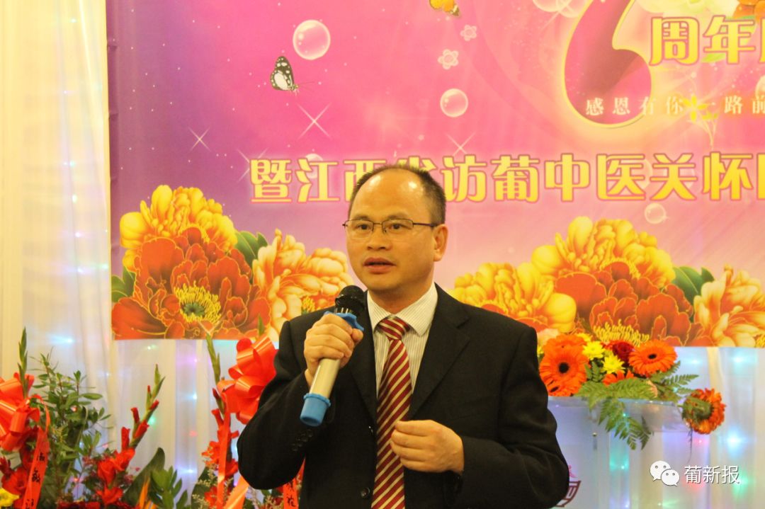 许志达参赞代表中国驻葡萄牙大使馆及蔡润大使向葡萄牙中华妇女联合总会成立七周年表示祝贺,向江西中医关怀团的到来表示欢迎。许志达参赞说,妇女会成立七年来,始终致力于葡萄牙侨界妇女工作,努力维护妇女合法权益,积极参与葡萄牙侨界的各项活动,热心社会公益事业,始终全力配合使馆的各项涉侨工作,坚持不懈地为中葡关系发展添砖加瓦,展现了中华妇女勤劳能干,自立自强,乐于奉献的优秀品质,也树立了葡萄牙中华妇女联合总会的良好形象。在七年中,联合会也不断发展壮大,涌现出了以金云华会长,徐小英荣誉会长为代表的一大批优秀女侨领,联合总会是众多旅葡侨团中一道靓丽的风景线,也是一张独具特色的名片。