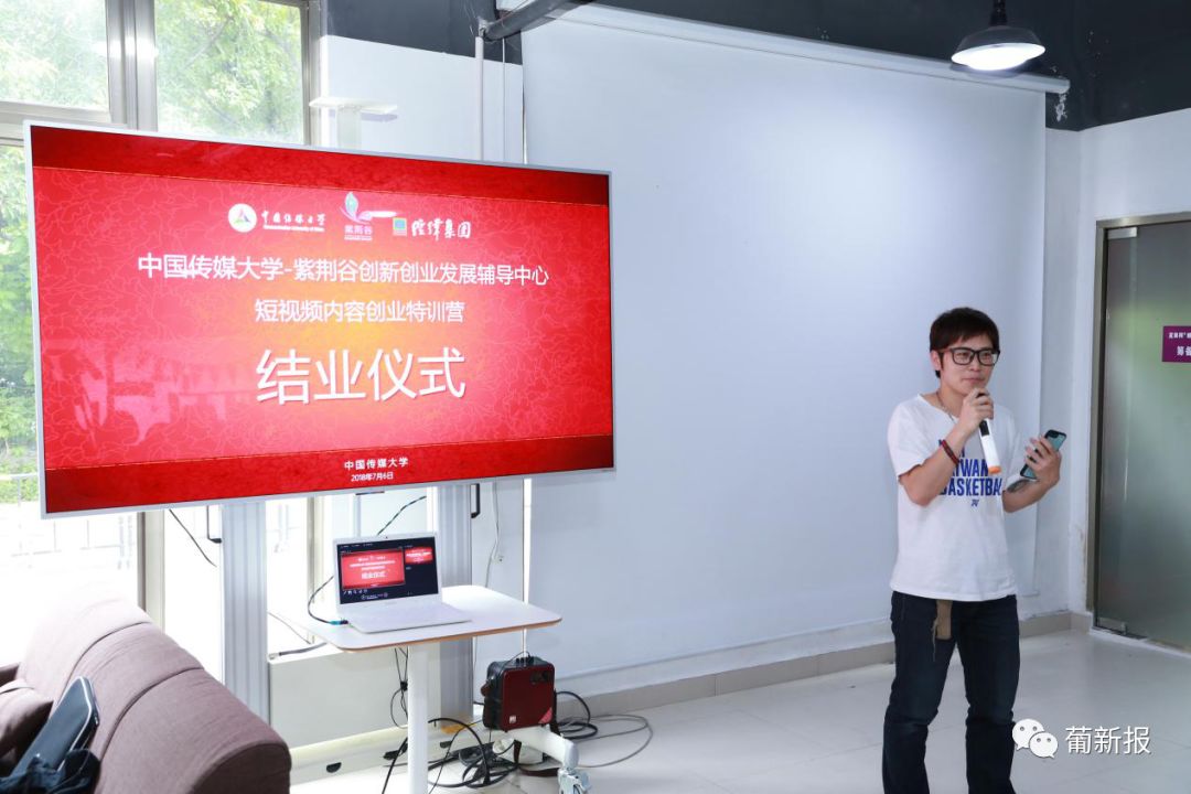【葡新国际传媒 文/本报记者 思雪露】7月6日,为期12天的“中国传媒大学——紫荆谷创新创业发展辅导中心短视频内容创业特训营”正式结业,全班同学参与了结业仪式。结业仪式上,同学们展现了这些天来的学习成果,分享了这段时间以来的心得体会,怀念着这两个星期朝朝暮暮相处的快乐时光。